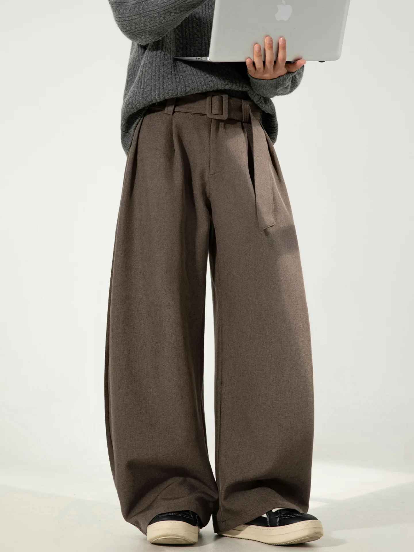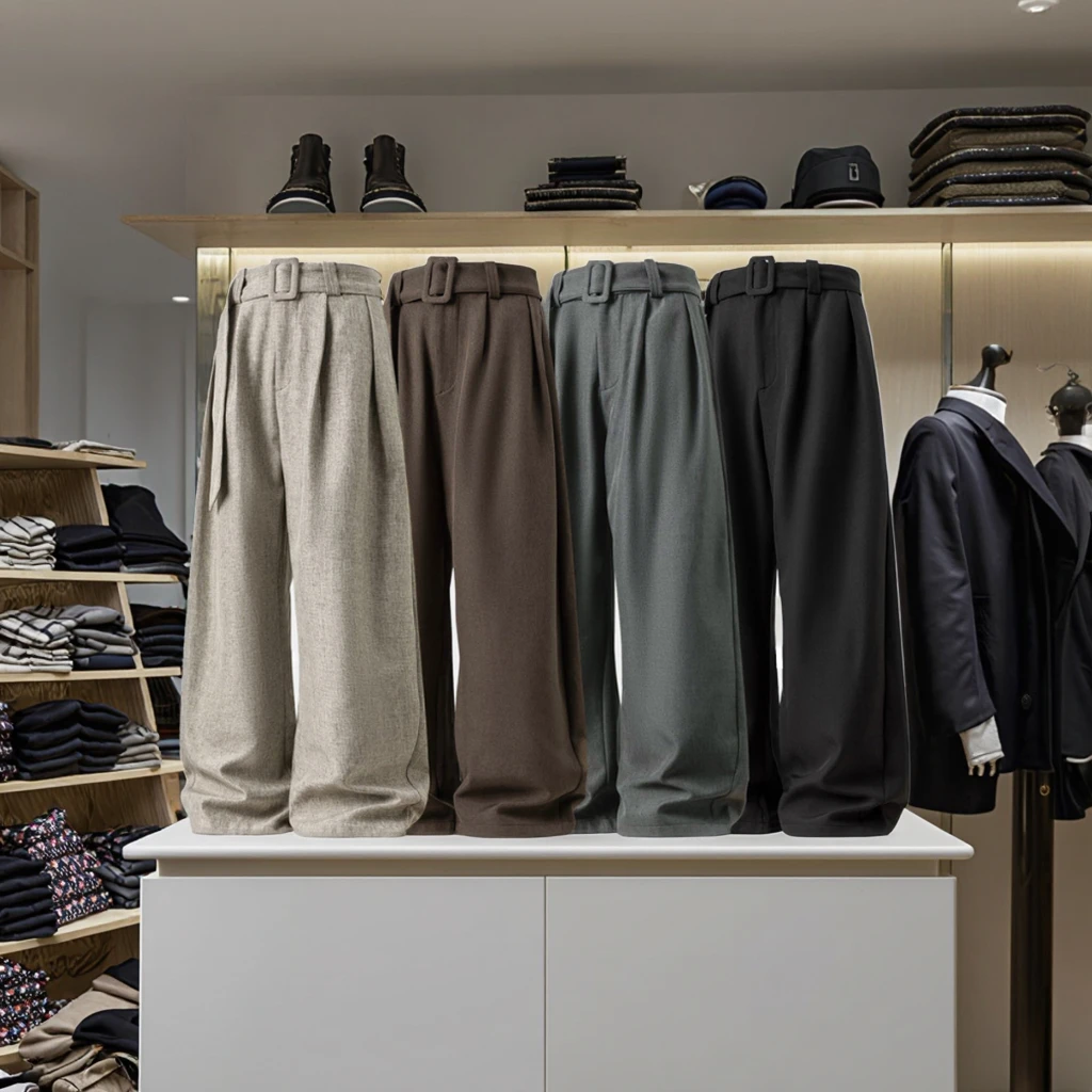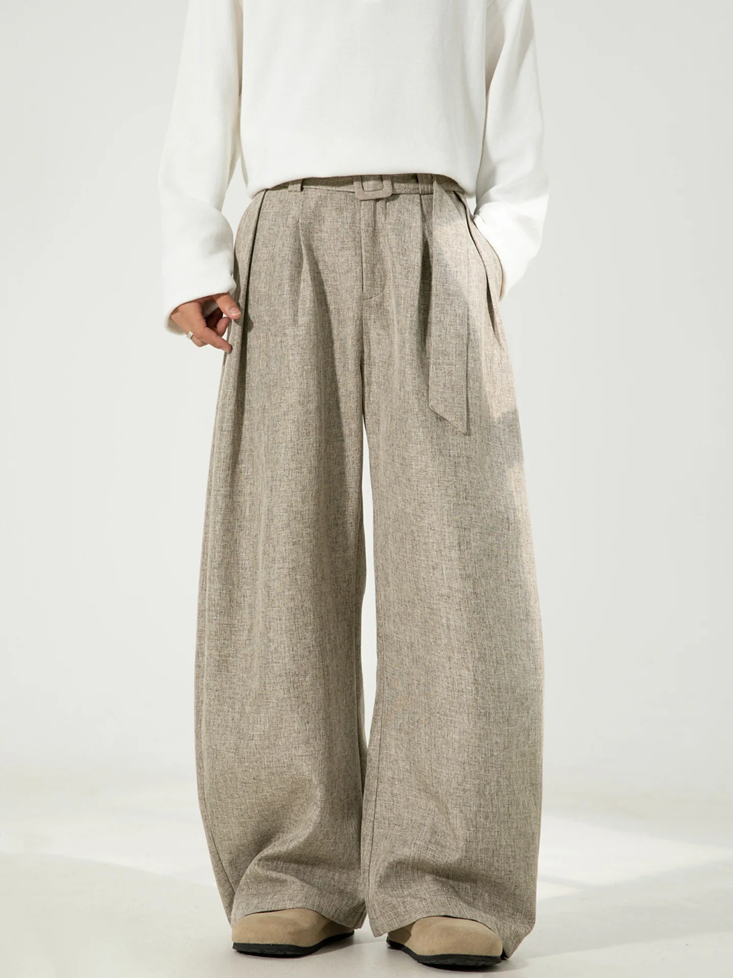 Men's Casual Mid Denim Straight Woven Old Money Style Trousers Three-dimensional Pleated Draping Solid Autumn Profile Medium